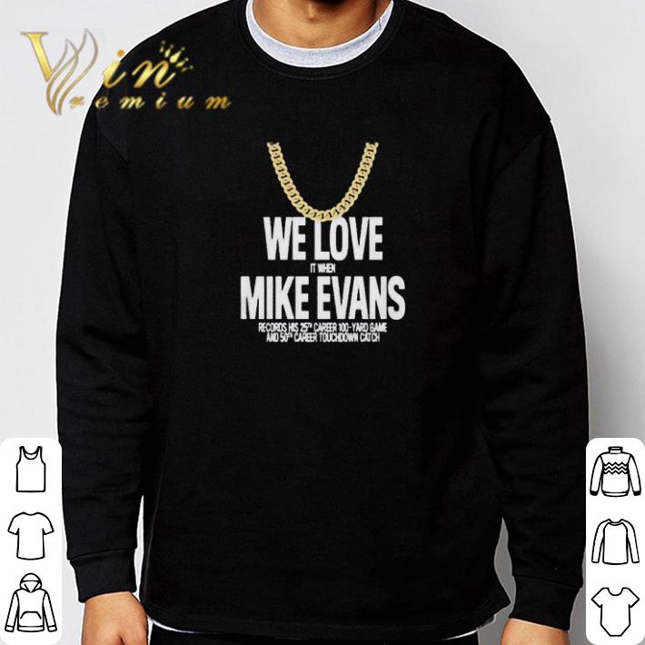 Don’t hesitate, let’s buy We Love It When Mike Evans shirt now. Surely you will be satisfied because of 100% guaranted and refund money, fast shipping in the world, high quality fabric and printing. Click button bellow to see price and grab it!